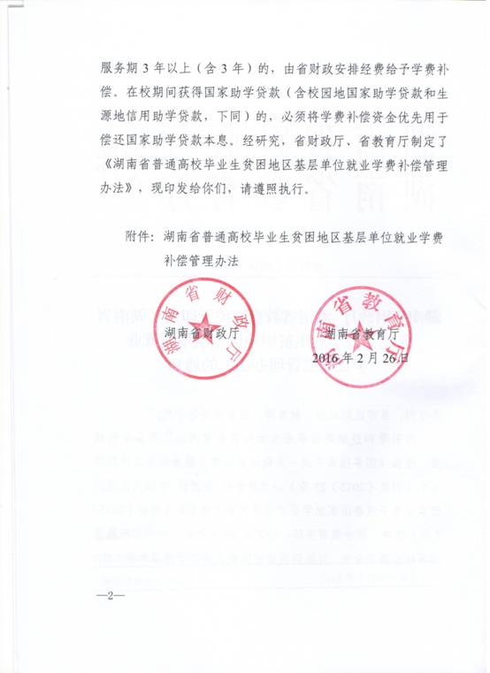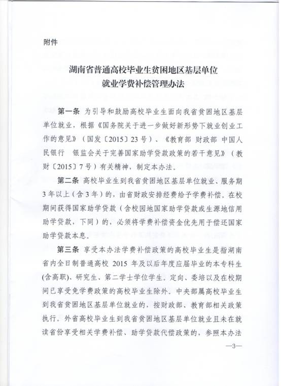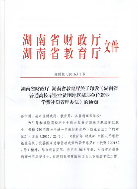 转发湖南省财政厅 湖南省教育厅关于印发《湖南省普通高校毕业生贫困地区基层单位就业学费补偿管理办法》的通知
