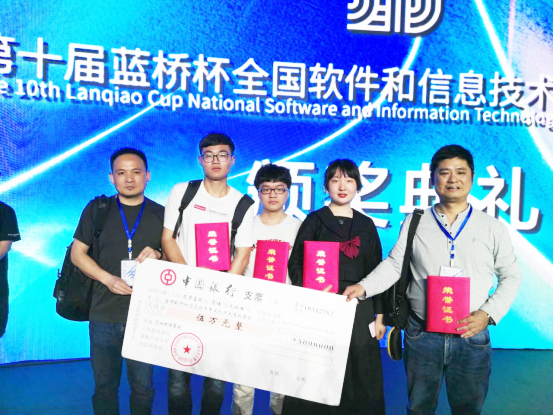 (转自公司新闻网)2019年5月26日,第十届“蓝桥杯”全国软件和信息技术专业人才大赛全国总决赛颁奖典礼在北京大学体育馆落下帷幕。公司信息与电子工程公司阳王东、阳俊老师指导的参赛项目“基于OpenCv的视觉型双轴喷胶系统”(队员:张艺虹、宁志偲、赵文杰、张圳威)在众多强大对手中脱颖而出,喜获全国软件创业团队赛特等奖,这是该项比赛中全国唯一一个特等奖。