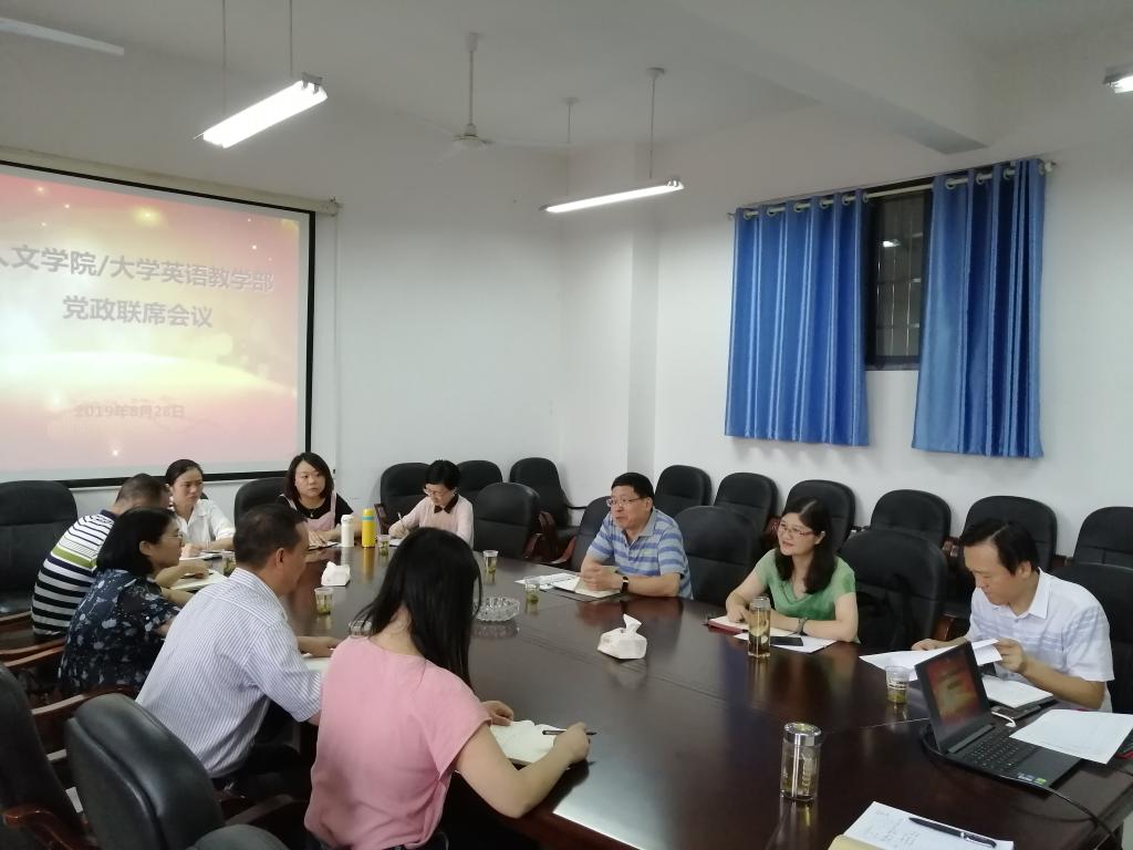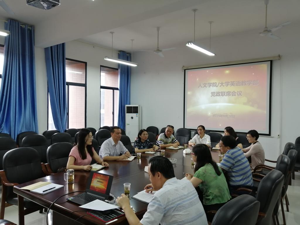 8月28日上午,365英国上市在管理楼509召开新学期第一次党政联席会,会议由365英国上市党委书记黄晔主持,会议集中讨论了新学期开学工作相关事宜。365英国上市党委委员、副董事长雷存喜受邀参加会议并作指导。