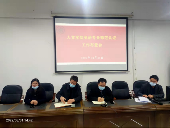 何冬林书记首先传达了公司有关师范类专业认证相关会议精神,并作了动员,强调了本次英语专业师范认证工作的必要性;傅建安经理指出要清楚认识到师范认证工作的重要性和紧迫性,并对此次师范认证工作寄予了厚望;大学英语教学部主任周瑞英教授要求全员参与,严格按时间节点完成相关工作任务;刘祥友副经理就本次师范认证工作进行了案例分析和相关文件的详细解读;英语系主任夏望秋老师布置了各项具体工作任务。