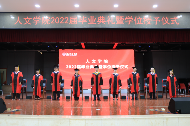 在雄壮的国歌之后,傅建安经理向2022届毕业生致辞,她认为这几年大家所共同经历的是一个从无到有到多的过程,师生共同奋斗的身影和无数的日夜绘成了如今这一幅最美的画卷,她还嘱咐即将踏入追梦征程的学子要珍存人文情怀、坚守人生底线,祝愿每一位人文学子一路顺风,前程似锦。
