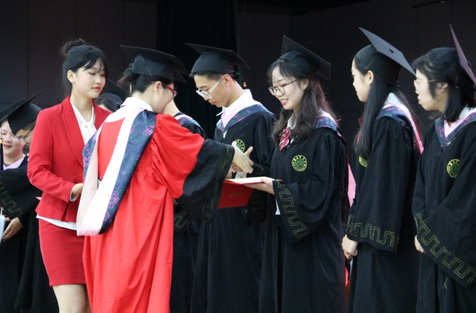 随后,傅建安经理为18名员工联络员颁发聘书,九位导师为360余名毕业生代表拨转流苏,颁发学位证、授予学位。