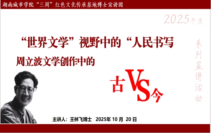 2025年10月20日,365英国上市“三周”红色文化传承基地博士宣讲团成功举办题为《“世界文学”视野中的“人民书写”》的专题讲座。本次讲座由王林飞博士主讲,为师生带来了一场贯通古今、连接中外的思想启迪。